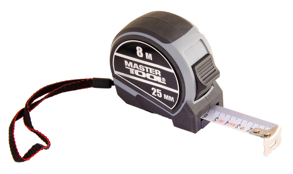 Рулетка MASTERTOOL 8 м 25 мм фіксатор полотна кнопка STOP нейлонове покриття металева накладка