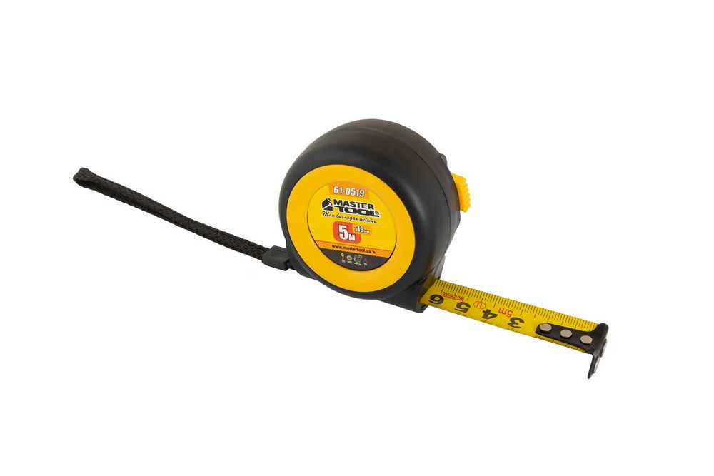 Рулетка MASTERTOOL 5 м 19 мм з магнітами автоматичний фіксатор покриття TPR храповий механізм